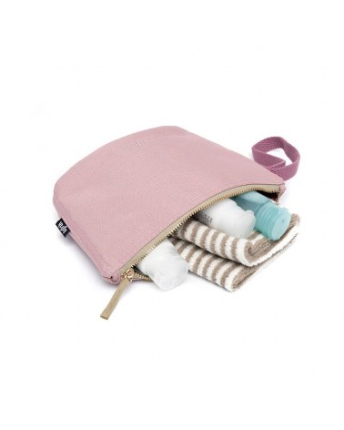 Questo beauty case presenta un ampio scomparto principale e una tasca a rete all'interno per tenere in ordine i piccoli oggetti. Manico laterale in cotone per facilitare il trasporto.