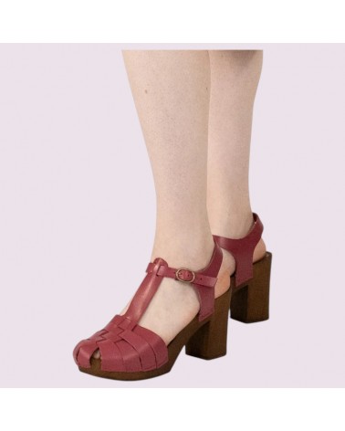 Zoccolo da donna con tomaia a gabbia in pelle conciata al vegetale.